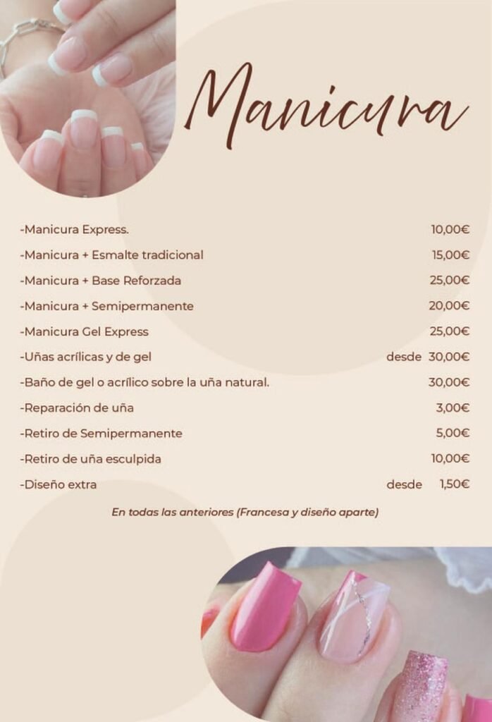 Comenzamos con una limpieza profunda de uñas y cutículas, seguida de exfoliación suave para eliminar células muertas, hidratación intensiva con productos de alta calidad y un relajante masaje que estimula la circulación. Finalizamos con el esmaltado que elijas: clásico, semipermanente o artístico, con acabados duraderos y llenos de estilo.